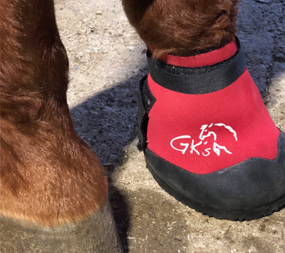 Neoprenstiefel mit innen gepolsterter Gummisohle. Es schützt verwundete oder kranke Hufe, kann bei Eisenverlust als "leichter" Reitschuh und als Transportschutz verwendet werden.