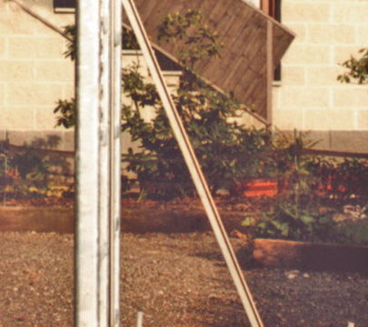 Paneel mit sechs Querstreben, mit abnehmbarem Durchgang. Abmessungen h 2,3m; 3m; 5 cm x 49 kg Gewicht. Zwei Stücke 3 m lang